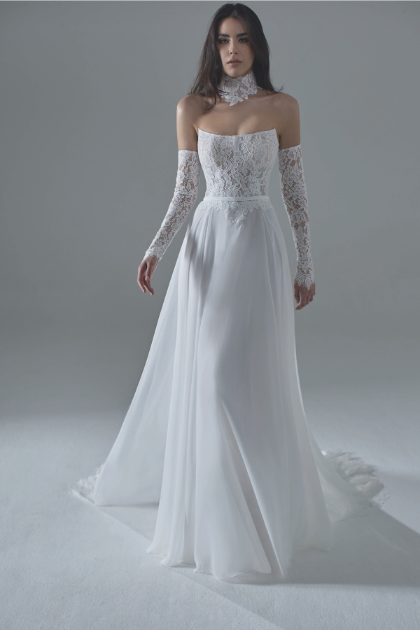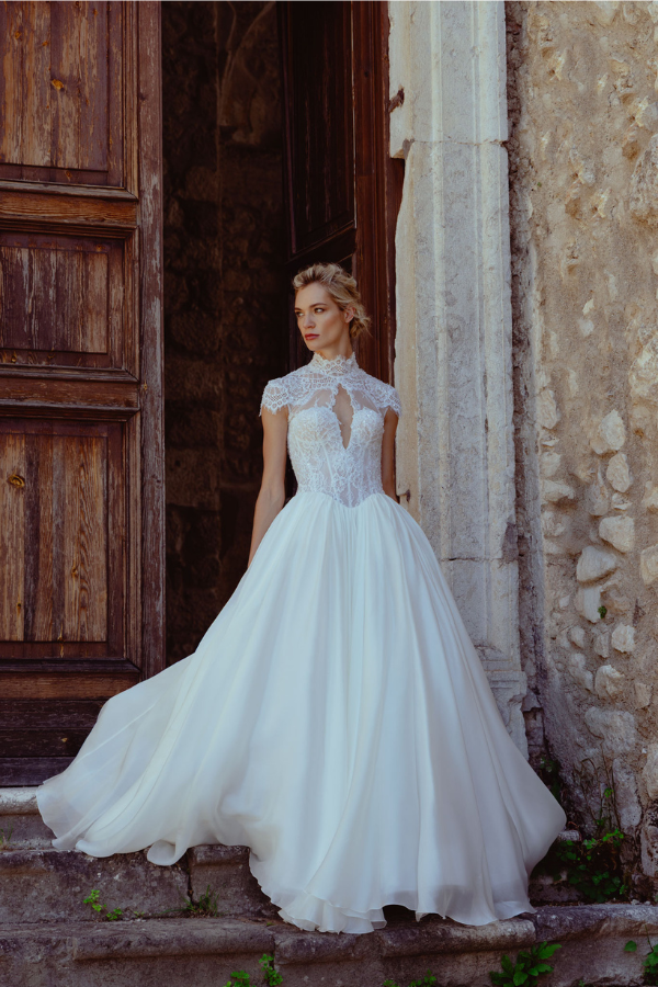 Ob die Braut nun moderne Kleider aus luxuriöser italienischer Spitze mit voluminösen, abnehmbaren Überröcken bevorzugt oder Prinzessinnen-inspirierte Ballkleider – in dieser Kollektion findet sie mit Sicherheit ihr Traumhochzeitskleid!“