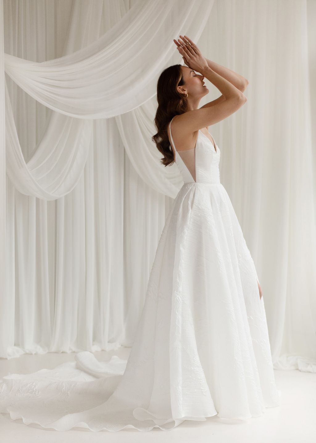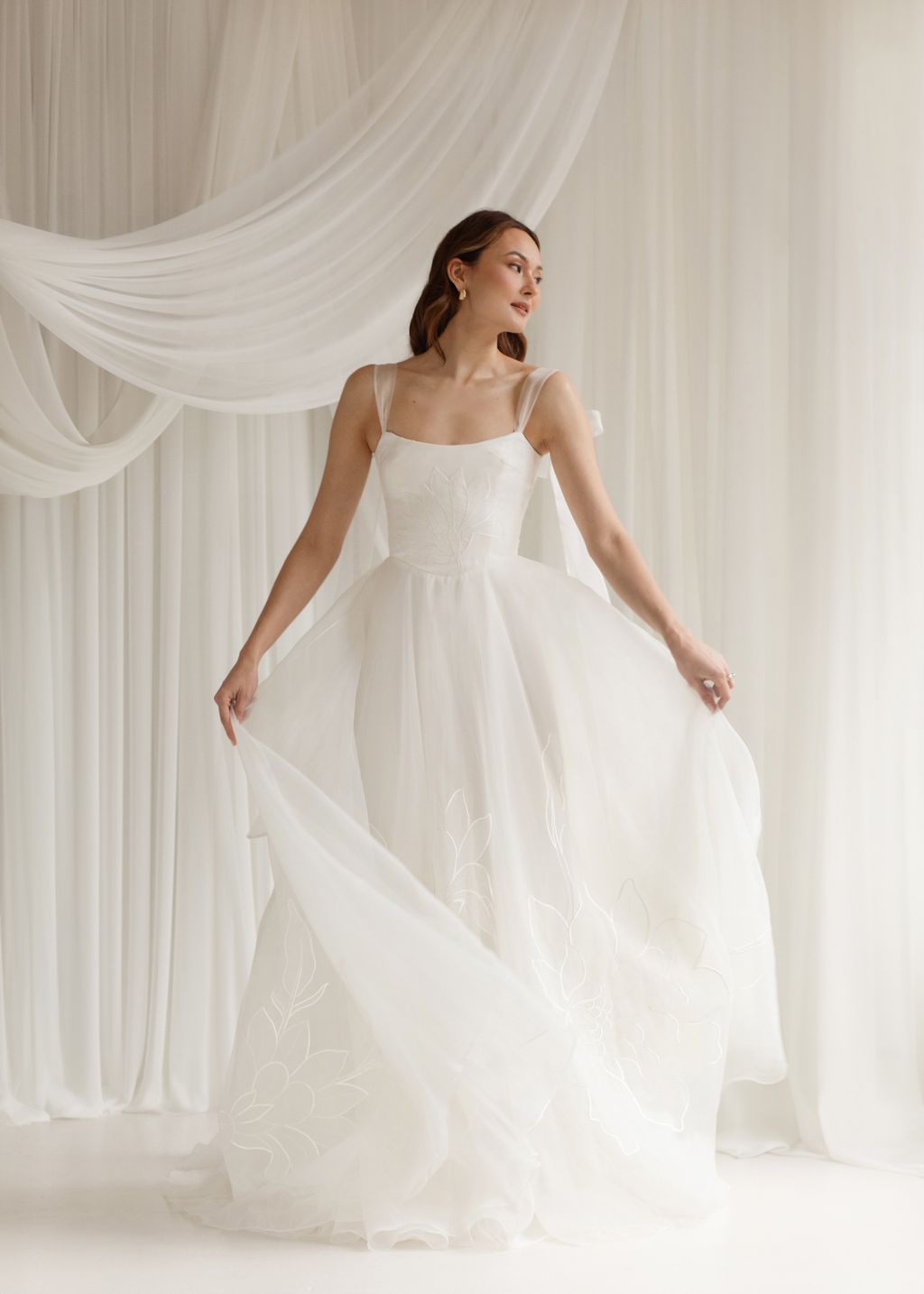 „Seit ihrer Gründung im Jahr 2013 hat Gaby Bayona mit Truvelle eine Brautmodenlinie geschaffen, die den Inbegriff von müheloser Romantik und zeitloser Eleganz verkörpert. Mit einer frischen Perspektive auf die Hochzeitsbranche bringt sie eine Kollektion hervor, die durch ihre leichten, verspielten Designs besticht – eine Hommage an die unbeschwerte Schönheit der Liebe.